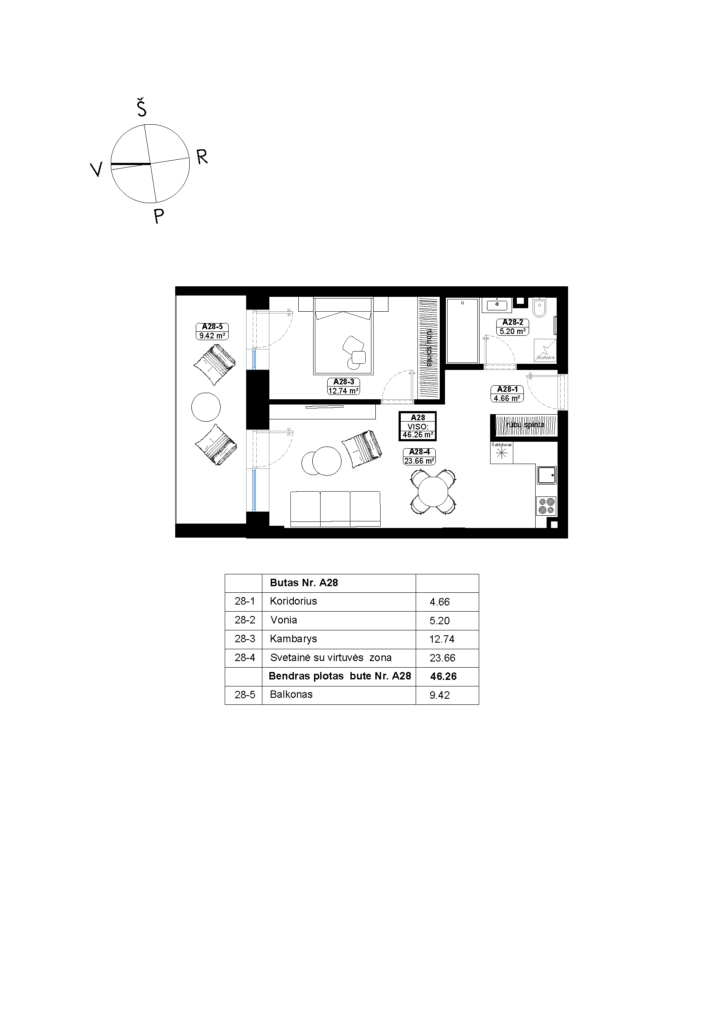 Plotas, m2 46,26