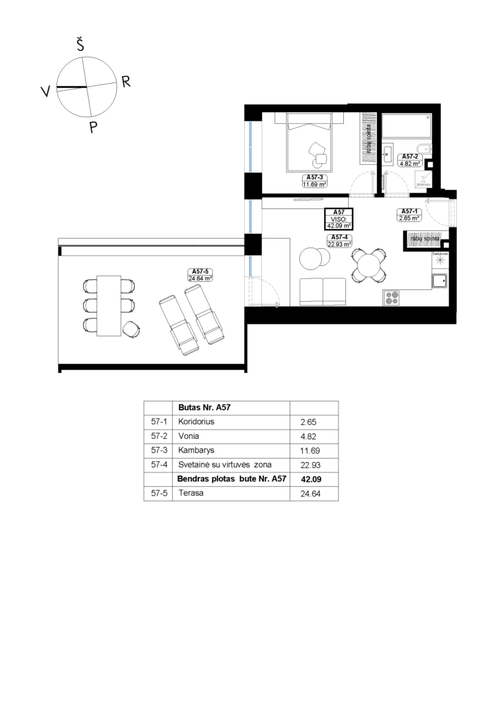 Plotas, m2 42,09