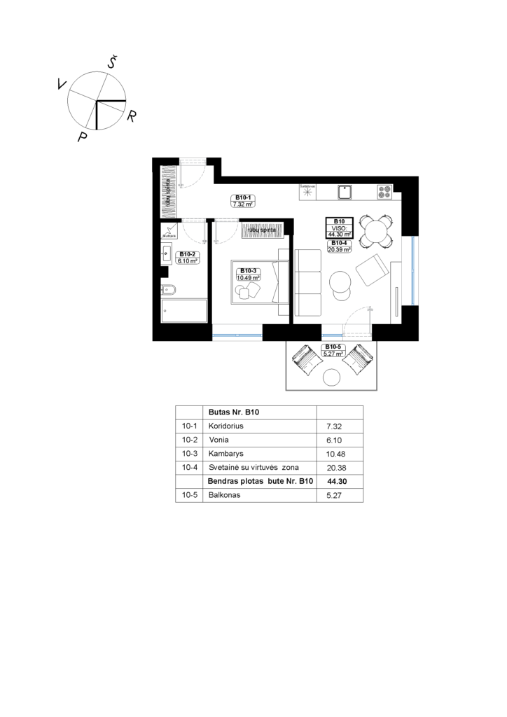 Plotas, m2 44,3